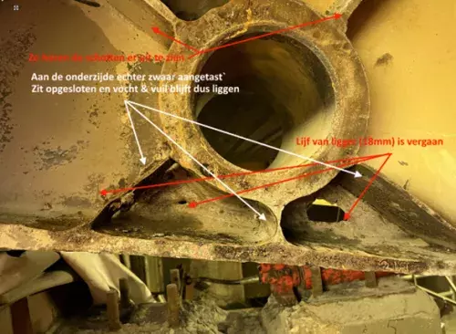 Tijdens de lopende werkzaamheden aan de technische installatie van de brug (van afgelopen januari) is extra geïnspecteerd op de dragende onderdelen van het beweegbare deel van de brug. Deze onderdelen zijn zonder de geplande werkzaamheden niet zichtbaar. Twee van de dragende onderdelen (de liggers) bleken ernstig aangetast.