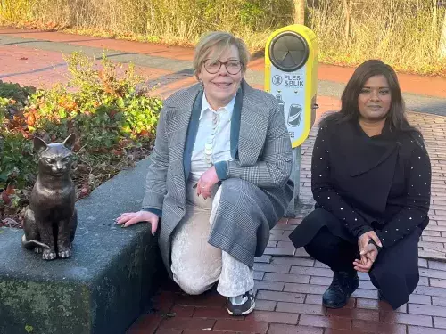 Op woensdag 14 januari onthulde wethouder Natalie Saaf samen met Sharita Kamta het bronzen beeld Brammetje de Stationskat bij station Purmerend Weidevenne.