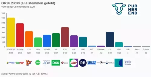 De voorlopige uitslag van de gemeenteraadsverkiezingen in Purmerend is bekend. In totaal bracht 46,4% van de kiesgerechtigden een stem uit. Dat is hoger dan bij de vorige gemeenteraadsverkiezingen in 2021 toen Purmerend en Beemster fuseerden tot 1 gemeente.