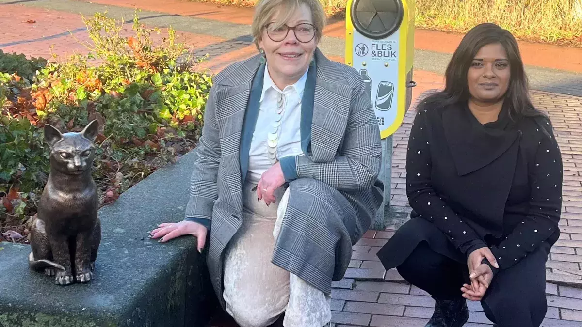 Op woensdag 14 januari onthulde wethouder Natalie Saaf samen met Sharita Kamta het bronzen beeld Brammetje de Stationskat bij station Purmerend Weidevenne.