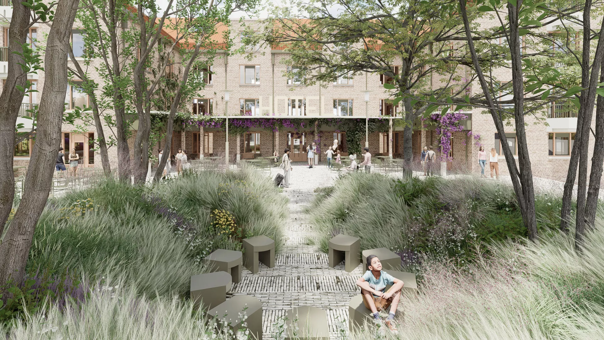 Het woon- en hotelgedeelte ligt aan de openbare beschutte daktuin. De twee vleugels van het gebouw, omsluiten een terras voor een stadscafé. De woningen hebben uitzicht op het al aanwezige groene Singelpark, aan de huidige Nieuwstraat. Met maatschappelijke- en culturele voorzieningen binnen handbereik, winkels op loopafstand en het prachtige uitzicht, maakt het wonen in DE SCHAPENPOORT een unieke plek in Purmerend.