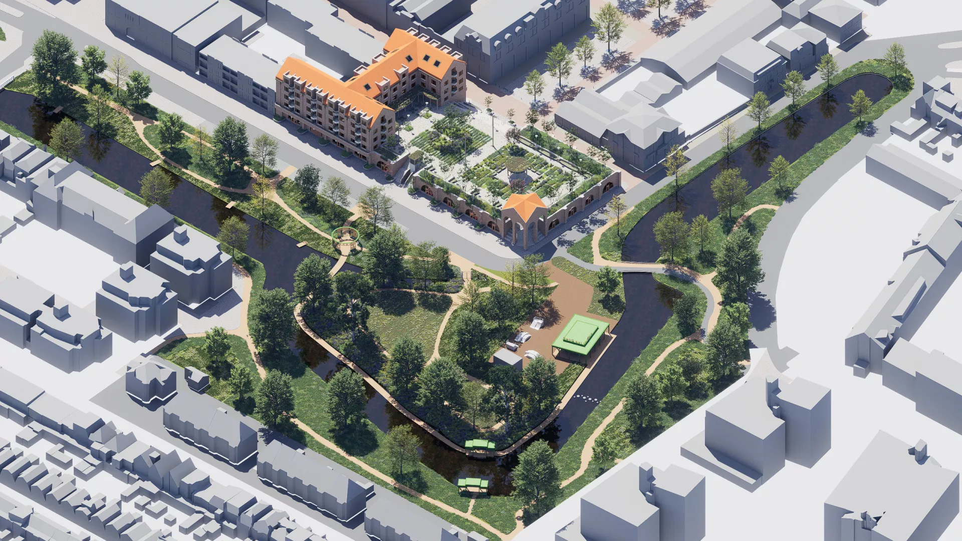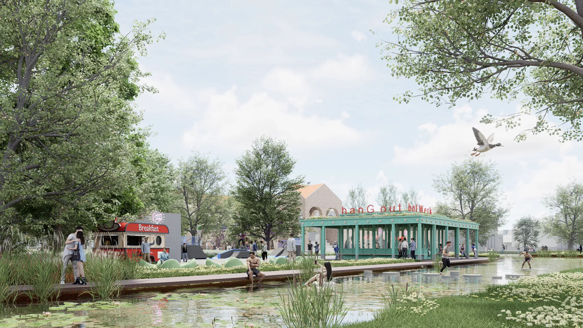 Op de plek van het Bolwerk komen diverse houten paviljoens, waaronder een hang-out voor jongeren. Als Purmerends architectenbureau gaan wij in de vervolgfase graag met de jongeren in gesprek om de jeugd nog meer te betrekken bij het uiteindelijke ontwerp. Op het Bolwerk en aan de singel zal volop ruimte zijn voor activiteiten om met elkaar te ontspannen, te sporten en om elkaar te ontmoeten.